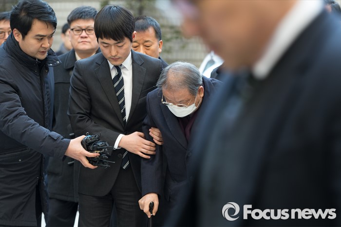 (서울=포커스뉴스) 조세포탈과 횡령·배임 등의 혐의로 기소된 조석래 효성그룹 회장이 15일 오후 서울 서초구 서울중앙지법에서 열린 1심 선고 공판에 출석하기 위해 법정으로 향하고 있다.