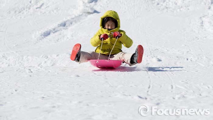 (평창=포커스뉴스) 15일 오후 강원도 평창군 횡계리 일대에서 열린 대관령 눈꽃축제를 찾은 한 어린이가 눈썰매를 타며 즐거운 시간을 보내고 있다. 이번 행사는 오는 15일 시작해 내달 10일 강원 평창군 횡계리 일대에서 열린다.