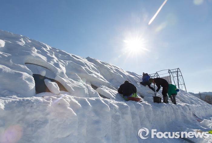 (평창=포커스뉴스) 15일 오후 강원도 평창군 횡계리 일대에서 열린 대관령 눈꽃축제를 찾은 관람객들이 눈으로 만든 조각들을 보며 즐거운 시간을 보내고 있다.