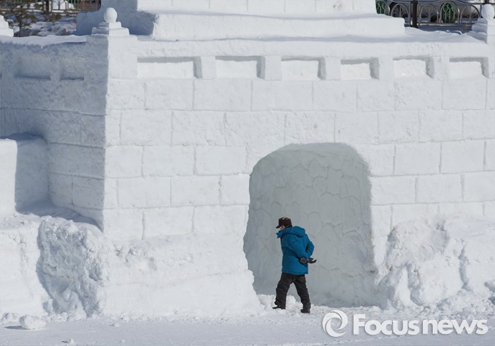 (평창=포커스뉴스) 15일 오후 강원도 평창군 횡계리 일대에서 열린 대관령 눈꽃축제를 찾은 관람객들이 눈으로 만든 조각들을 보며 즐거운 시간을 보내고 있다.