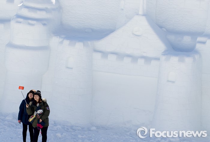 (평창=포커스뉴스) 15일 오후 강원도 평창군 횡계리 일대에서 열린 대관령 눈꽃축제를 찾은 관람객들이 눈으로 만든 조각들을 보며 즐거운 시간을 보내고 있다.