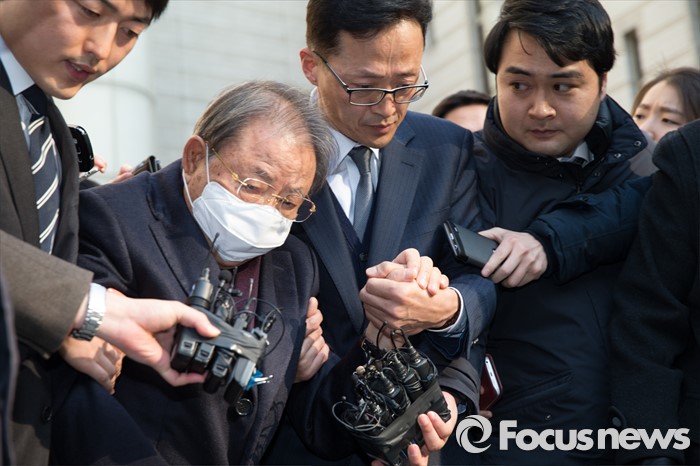 (서울=포커스뉴스) 조세포탈과 횡령·배임 등의 혐의로 기소된 조석래 효성그룹 회장이 15일 오후 서울 서초구 서울중앙지법에서 열린 1심 선고 공판을 끝내고 법정을 나서고 있다.