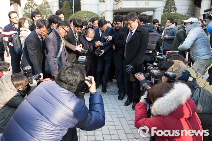 (서울=포커스뉴스) 조세포탈과 횡령·배임 등의 혐의로 기소된 조석래 효성그룹 회장이 15일 오후 서울 서초구 서울중앙지법에서 열린 1심 선고 공판을 끝내고 법정을 나서고 있다.