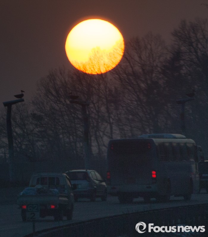 (용인=포커스뉴스) 매섭던 추위가 한풀 꺾이며 포근한 주말이 예상되는 15일 오후 경기 용인시 처인구 양지터널 인근에서 일몰이 관측되고 있다.