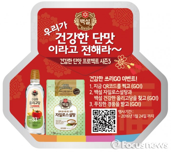 (서울=포커스뉴스) CJ제일제당은 ‘백설 자일로스설탕’과 ‘백설 건강한 올리고당’을 활용한 ‘2016 건강한 단맛 프로젝트’를 진행한다고 15일 밝혔다.