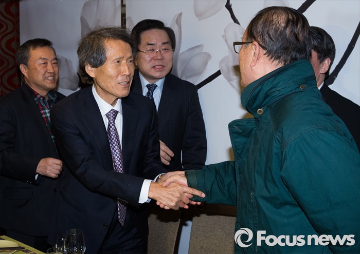 (서울=포커스뉴스) 한상진 국민의당 창당준비위원장과 안철수 인재영입위원장이 15일 오후 서울 관악구 한 태국 식당에서 진행된 故 김대중 전 대통령 재임 당시 자문정책기획위원회 모임에 참석해 위원들과 인사하고 있다.
