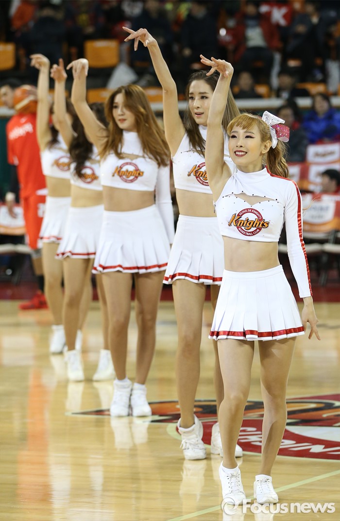 (서울=포커스뉴스) 15일 서울 잠실학생체육관에서 열린 2015-2016 프로농구 SK-KGC 경기에서 SK 치어리더가 경기 시작전 코트의 분위기를 끌어 올리는 발랄한 춤을 선보이고 있다.