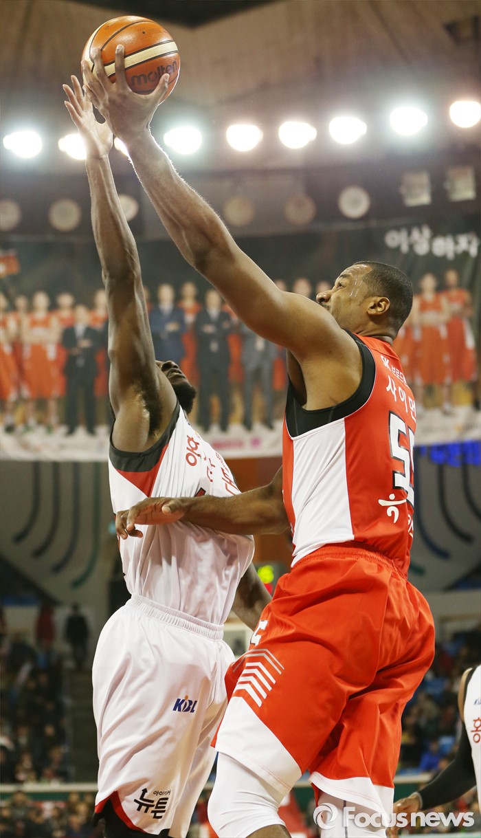 (서울=포커스뉴스) 15일 서울 잠실학생체육관에서 열린 2015-2016 프로농구 SK-KGC 경기에서 SK 사이먼의 레이업슛을 KGC 마리오 리틀이 블로킹을 시도하고 있다.