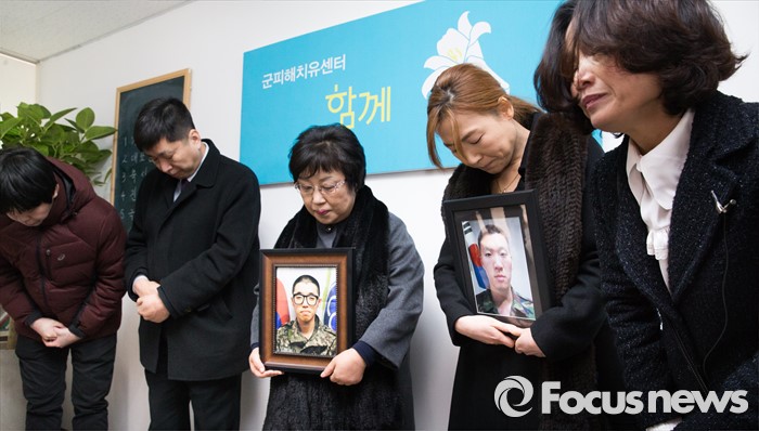 (서울=포커스뉴스) 16일 오후 서울 서대문구 군피해치유센터 '함께' 개소식에서 군피해장병 가족들이 인사하고 있다.
