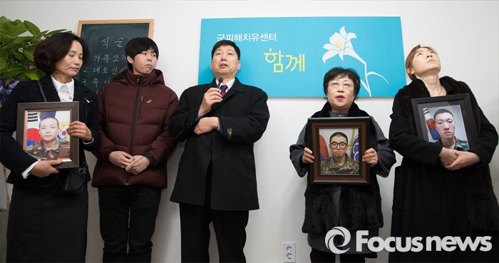 그러면서도 공 대표는 "도와주세요. 저는 울지 않을 겁니다. 맞서 싸워 이겨내고 피해자 유가족들에게 도움이 될 수 있는 힘을 주세요"라며 미소를 잃지 않았다.(서울=포커스뉴스) 16일 오후 서울 서대문구 군피해치유센터 '함께' 개소식에서 정상병 아버지 정대근 씨가 인사말을 하고 있다. 군피해치유센터 '함께'는 군에서 피해(사망∙상해)를 입은 당사자와 그 가족의 트라우마 치유를 목표로 하는 센터이다.왼쪽부터 故 노우민 훈련병 어머니 공복순, 정태원 상병, 정태원 상병 아버지 정대근, 故 윤승주 일병 어머니 안미자, 故 신성민 상병 둘째누나 신미희. 2016.01.16 오장환 기자 (서울=포커스뉴스) 16일 오후 서울 서대문구 군피해치유센터 '함께' 개소식에서 故 윤승주 일병 어머니 안미자 씨가 눈물을 닦고 있다.군피해치유센터 '함께'는 군에서 피해(사망∙상해)를 입은 당사자와 그 가족의 트라우마 치유를 목표로 하는 센터이다. 2016.01.16 오장환 기자