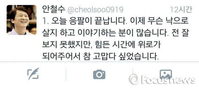 그는 "저는 모두가 기회를 가질 수 있는 세상, 성실한 사람이 대접받는 세상, 서로에 대해 배려하는 세상을 꿈꾼다"며 "더 노력하겠다"는 다짐을 밝혔다.<사진출처=안철수 의원 트위터 캡처>