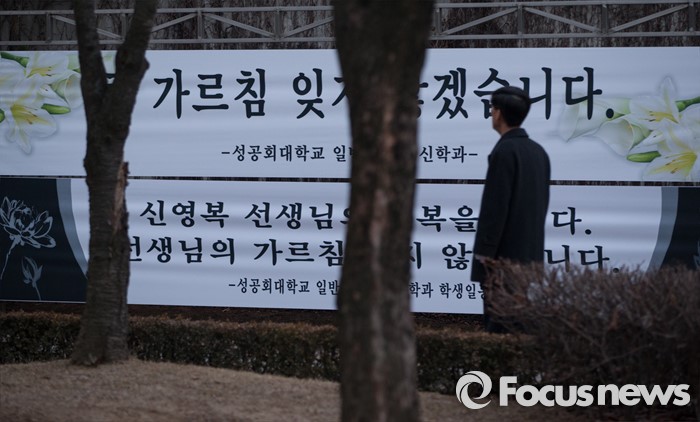 (서울=포커스뉴스) 17일 오후 서울 구로구 성공회대학교 대학성당에 차려진 故 신영복 성공회대 석좌교수의 빈소에 조문객들의 발길이 이어지고 있다.