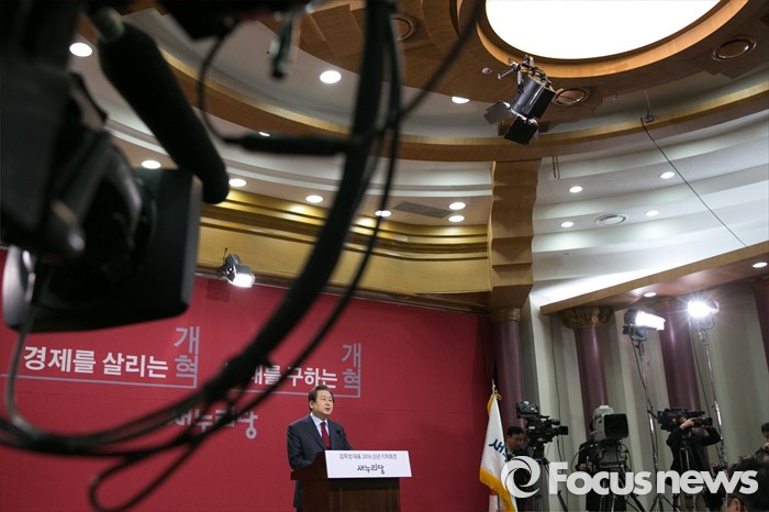 (서울=포커스뉴스) 김무성 새누리당 대표가 18일 오전 서울 여의도 국회 의원회관에서 신년 기자회견을 하고 있다.