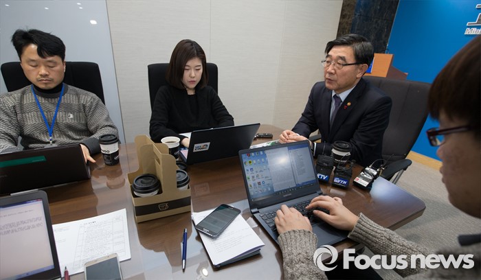 (세종=포커스뉴스) 이기권 고용노동부장관이 18일 오전 세종시 정부세종청사 고용부 기자실을 방문, 출입기자들과 간담회를 갖고 노동현안에 대해 질문에 답변하고 있다.