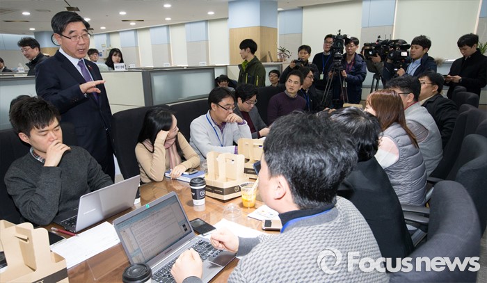 (세종=포커스뉴스) 이기권 고용노동부장관이 18일 오전 세종시 정부세종청사 고용부 기자실을 방문, 출입기자들과 간담회를 갖고 노동현안에 대해 질문에 답변하고 있다.