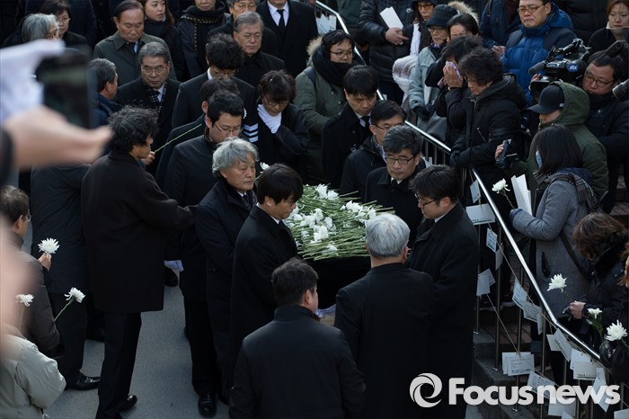 (서울=포커스뉴스) 18일 오후 서울 구로구 성공회대학교에서 엄수된 '故 신영복 석좌교수 영결식'에서 고인의 영정과 유해가 운구되고 있다.