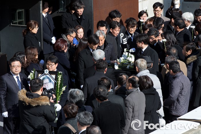 (서울=포커스뉴스) 18일 오후 서울 구로구 성공회대학교 대학성당에서 故 신영복 석좌교수 영결식이 끝나고 고인의 영정과 유해가 운구되고 있다.