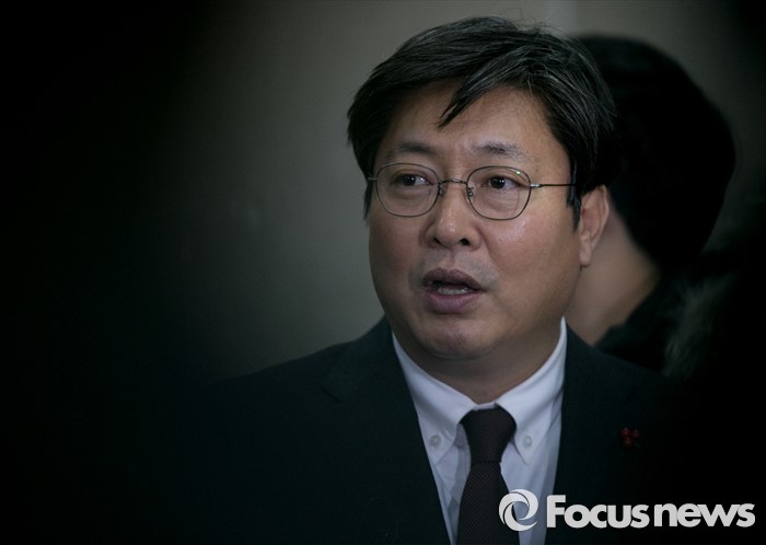 (서울=포커스뉴스) 18일 오후 서울 여의도 국회 정론관에서 운영위원회 야당 간사인 이춘석 더불어민주당 원내수석부대표가 여당이 단독으로 운영위원회 전체회의를 소집해 '심사기일 지정' 요건(직권상정요건)을 완화하는 내용의 국회법 개정안을 처리한 것과 관련 기자회견을 마친 뒤 취재진 질문에 답하고 있다.