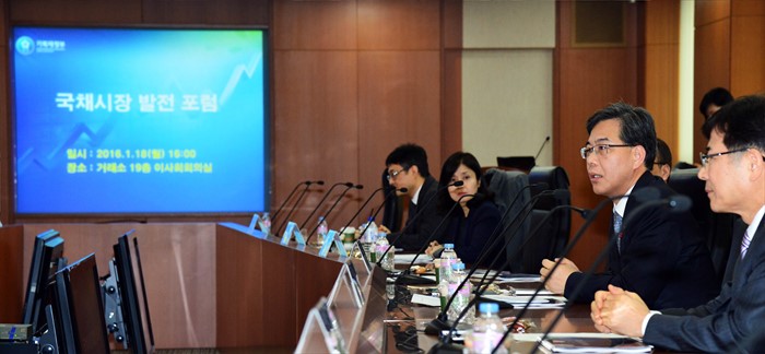 (서울=포커스뉴스) 송언석 기획재정부 차관이 18일 서울시 영등포구 여의도 한국거래소에서 열린 국채시장 발전 포럼에 참석해 모두 발언을 하고 있다. <사진제공=기획재정부>