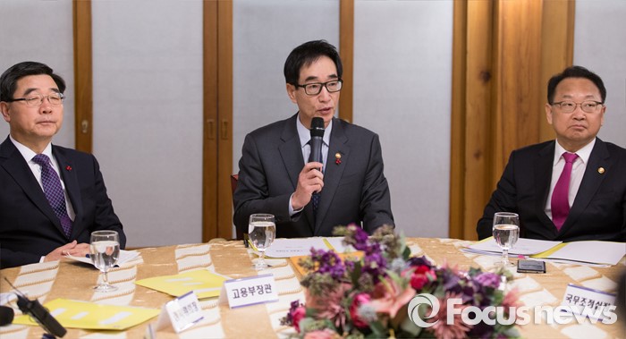 (서울=포커스뉴스) 19일 오전 서울 종로구 삼청동 국무총리공관에서 열린당·정·청 정책조정협의회에 참석한 이준식 사회부총리 겸 교육부 장관이 인사말을 하고 있다. 왼쪽부터 이기권 고용노동부 장관, 이 장관, 유일호 경제부총리 겸 기획재정부 장관.