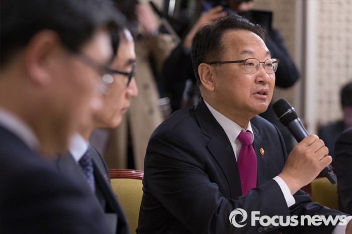 (서울=포커스뉴스) 19일 오전 서울 종로구 삼청동 국무총리공관에서 열린당·정·청 정책조정협의회에 참석한 유일호 경제부총리 겸 기획재정부 장관이 모두발언을 하고 있다.