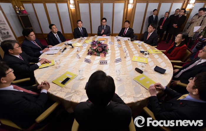 (서울=포커스뉴스) 19일 오전 서울 종로구 삼청동 국무총리공관에서 열린당·정·청 정책조정협의회에 참석한 이준식(가운데) 사회부총리 겸 교육부 장관이 인사말을 하고 있다.