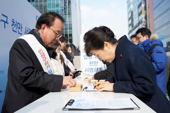 박 대통령은 18일 판교 차바이오컴플렉스에서 열린 6개 부처 합동업무보고 자리에서 "저 역시 국민들과 함께 서명운동에 동참할 것"이라고 밝힌 뒤 판교역 광장의 '경제활성화 입법촉구를 위한 1천만인 서명 운동' 현장을 방문해 직접 서명 했다.