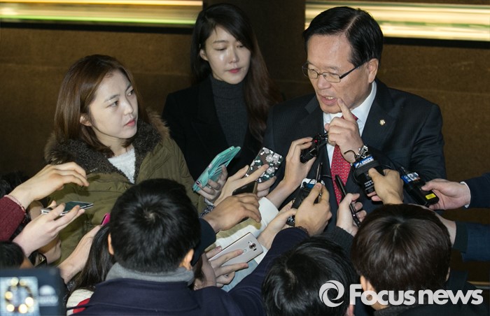(서울=포커스뉴스) 새누리당이 단독으로 직권상정 완화 국회법 개정 시도에 착수한 19일 오전 정의화 국회의장이 서울 여의도 국회로 출근하며 취재진 질문을 받고 있다.