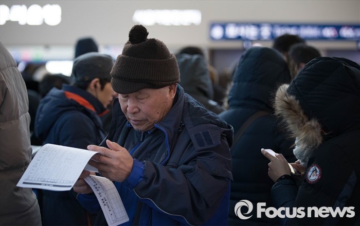 (서울=포커스뉴스) 설 승차권 현장예매가 시작된 19일 오전 서울 중구 서울역 매표소 앞에서 한 어르신이 승차권을 구입하기 전 열차 시간을 확인하고 있다. 코레일은 19일과 20일, 이틀 동안 설 연휴 열차 승차권 예매를 시작한다고 밝혔다.