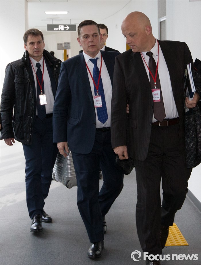 (세종=포커스뉴스) 요하네스 타머(가운데) 아우디폭스바겐코리아 사장과 프리드리히 요한 아이히러(왼쪽) 독일 폭스바겐 파워트레인 총괄책임자 등 독일본사 직원들이 19일 오전 세종시 정부세종청사 환경부 교통환경과에서 결함시정 관련 기술적 내용을 설명하고 환경부를 나서고 있다.