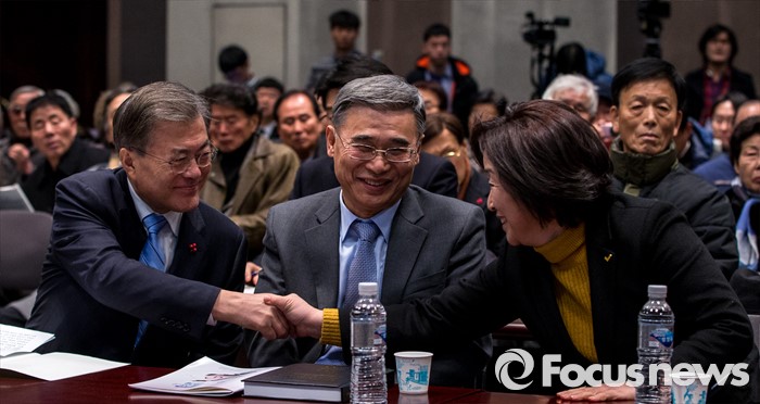 | △ 악수하는 문재인 대표-심상정 정의당 상임대표 |