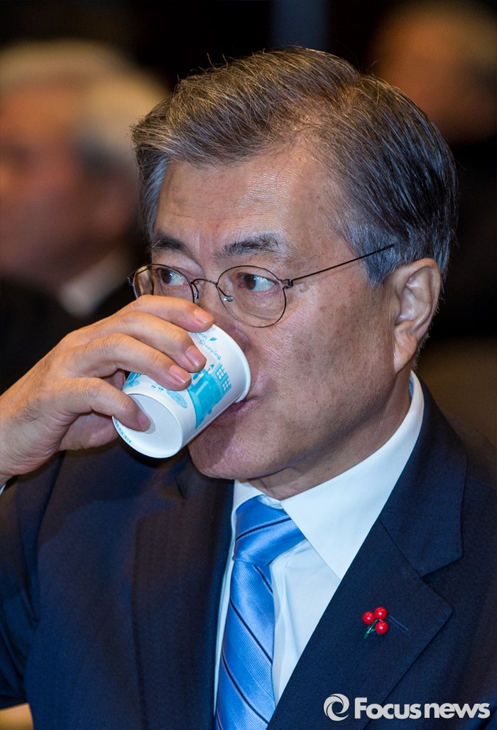| △ 물마시는 문재인 대표 |
