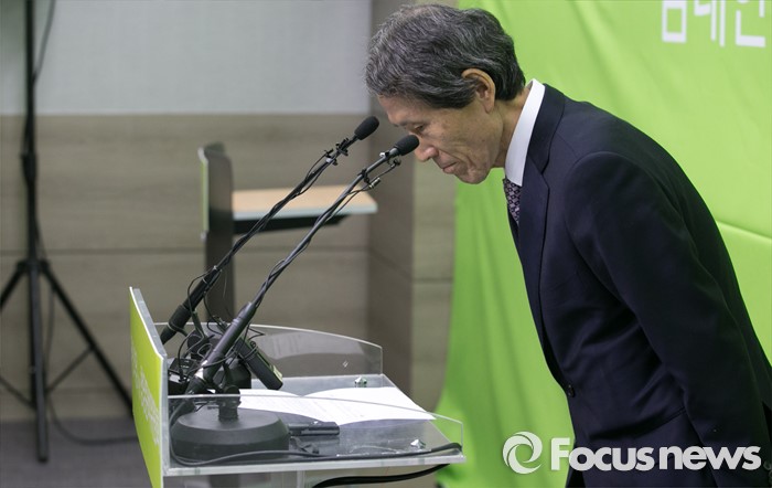 (서울=포커스뉴스) 한상진 국민의당 창당준비위원장이 19일 오후 서울 마포구 당사에서 4·19 관련단체 면담 후 기자회견을 열고 이승만 국부 발언 관련 사과를 하고 있다.
