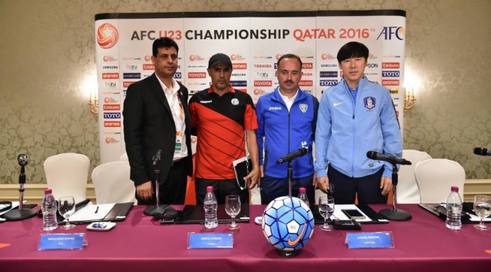 압둘가니 감독은 한국이 골득실에서 앞서 있는 상황이 결코 유리한 것이 아니라고 목소리를 높였다. 한국을 흔들면서 이라크에 자신감을 주기 위한 포석으로 보인다. 압둘가니 감독은 "한국은 비기기만 해도 1위를 확보할 수 있는 유리한 입장이다. 오히려 그런 상황이 선수들에게는 부담이 될 수도 있다"고 밝혔다. 이어 "조 1위를 차지하기 위해 최선을 다할 것이다"라고 덧붙였다.2016 AFC U-23 챔피언십에 출전하는 C조 감독들이 조별라운드 첫 경기를 앞두고 지난 13일(한국시간) 카타르 도하에서 공식 기자회견을 가졌다. <사진출처=아시아축구연맹(AFC) 공식 페이스북>