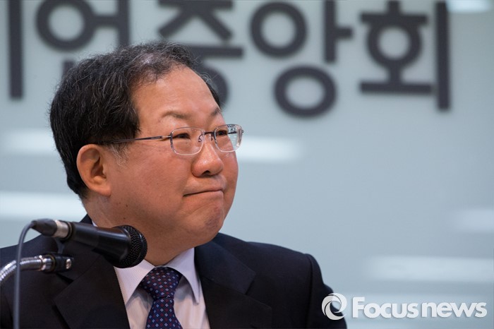 경총은 "언제든지 대화의 장은 열려 있다"면서 "경영계는 지금이라도 한국노총이 9.15 합의를 이끌었던 사회적 책무를 바탕으로 대타협 파기선언을 철회할 것을 재차 촉구한다"고 밝혔다.(서울=포커스뉴스) 21일 오전 서울 영등포구 중소기업중앙회에서 열린 '노동개혁 입법 촉구를 위한 경제5단체 긴급 기자회견'에서 박병원 한국경영자총협회장이 취재진의 질문을 받고 있다.