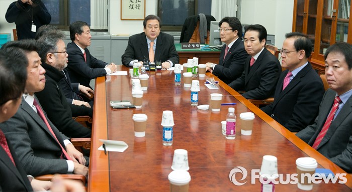 (서울=포커스뉴스) 김무성(가운데) 새누리당 대표가 20일 오전 서울 여의도 국회에서 제1차 총선기획단 회의를 주재하고 있다.