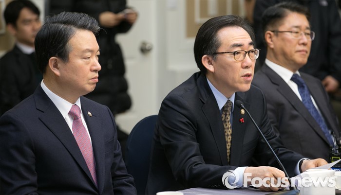 (서울=포커스뉴스) 20일 오전 서울 여의도 국회 귀빈식당에서 열린 테러 위기상황 대처를 위한 합동 당정협의에 참석한 조태열 외교부 2차관이 발언하고 있다. 왼쪽부터 강신명 경찰청장, 조 2차관, 김수민 국가정보원 2차장.