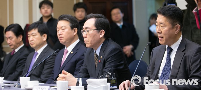 (서울=포커스뉴스) 20일 오전 서울 여의도 국회 귀빈식당에서 열린 테러 위기상황 대처를 위한 합동 당정협의에 참석한 김수민(오른쪽 첫번째) 국가정보원 2차장이 발언하고 있다.