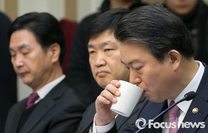 (서울=포커스뉴스) 20일 오전 서울 여의도 국회 귀빈식당에서 열린 테러 위기상황 대처를 위한 합동 당정협의에 참석한 강신명 경찰청장이 물을 마시고 있다.
