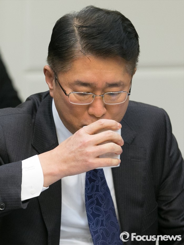 (서울=포커스뉴스) 20일 오전 서울 여의도 국회 귀빈식당에서 열린 테러 위기상황 대처를 위한 합동 당정협의에 참석한 김수민 국가정보원 2차장이 물을 마시고 있다.