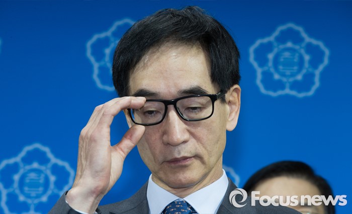 (세종=포커스뉴스) 이준식 사회부총리 겸 교육부장관이 19일 오전 세종시 정부세종청사 교육부 공용브리핑룸에서 국민행복분야 정부합동 업무보고 사전브리핑 중에 안경을 고쳐쓰고 있다.