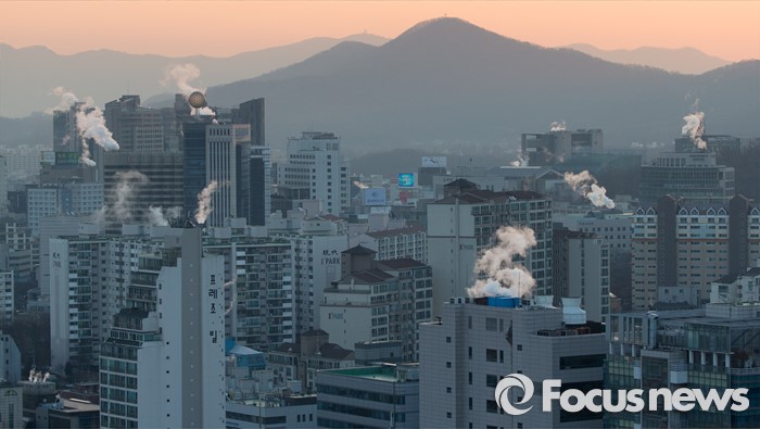 (서울=포커스뉴스) 전국이 영하의 강추위를 보이는 20일 오전 서울 서초구 도심의 고층빌딩에서 수증기가 피어오르고 있다.