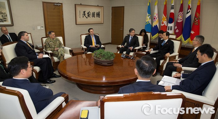 (서울=포커스뉴스) 20일 오전 서울 국방부에서 한민구 장관과 토니 블링큰 미 국무부 부장관이 북한의 제4차 핵실험에 대한 평가와 함께 한·미 양국의 공조 방안 등을 논의하고 있다.