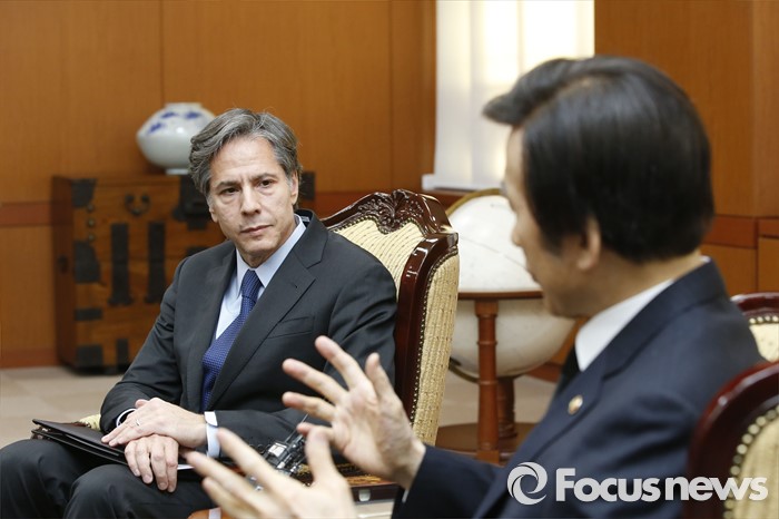 (서울=포커스뉴스) 북한의 4차 핵실험에 대한 한미 공조 방안을 논의하기 위해 방한한 토니 블링큰 미국 국무부 부장관이 20일 오전 서울 종로구 외교부에서 윤병세 외교부 장관을 예방하고 있다.