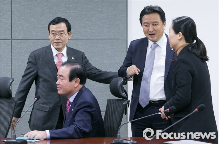 (서울=포커스뉴스) 20일 오전 서울 여의도 국회 의원회관에서 열린 국민의당 소속 의원단 회의에 참석한 임내현(왼쪽부터), 장병완, 김영환, 권은희 의원이 대화하고 있다.