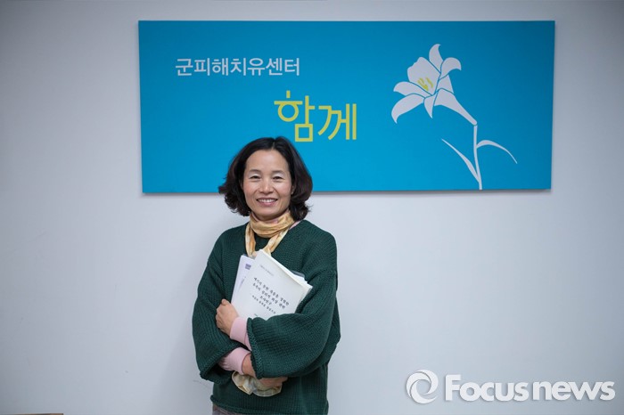(서울=포커스뉴스) 20일 오후 서울 서대문구에 위치한 군 피해 치유센터 '함께' 에서 공복순 대표가 본지와 인터뷰를 하기 전 사진 촬영을 하고 있다. 공복순 대표는 2011년 4월 논산훈련소에서 억울한 죽음을 당한 노우빈 훈련병의 어머니이며 최근 군피해치유센터 '함께' 를 만들었다.