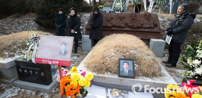 (남양주=포커스뉴스) 20일 오후 경기도 남양주시 모란공원묘지에서 열린 '용산참사 7주기 철거민 민중열사 추모제'에서 유족들이 발언을 하고 있다.