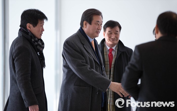 (서울=포커스뉴스) 김무성 새누리당 대표가 20일 오전 서울 동작구 김영삼대통령 기념도서관에서 열린 민주동지회 신년 인사모임에 참석, 관계자들과 인사를 나누고 있다.