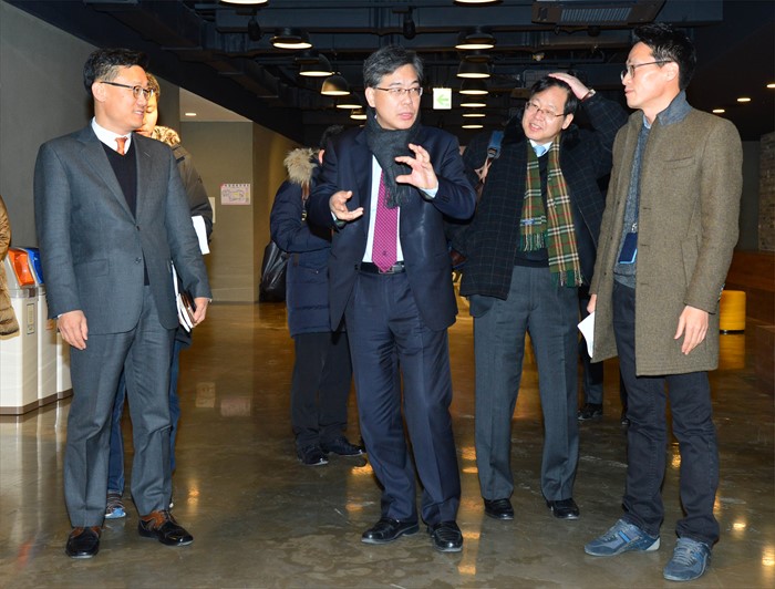 (서울=포커스뉴스) 송언석 기획재정부 차관이 20일 서울 중구 다동 문화창조벤처단지를 현장 방문해 콘텐츠 제작지원 시설 시찰을 하고 있다. <사진제공=기획재정부>