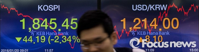 (서울=포커스뉴스) 코스피 지수가 외국인과 기관의 매도 공세에 전 거래일보다 44.19포인트(2.34%) 하락한 1,845.45에 거래를 마친 20일 오후 서울 중구 KEB하나은행 딜링룸에서 한 딜러가 업무를 보고 있다. 이날 원달러 환율은 전 거래일보다 8.1원 오른 1214원에 거래를 마감했다.